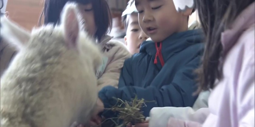 At the ceremony, the students presented the alpacas with graduation certificates they made. The students then fed hay to the alpacas and petted them to say goodbye. They also sang a song to express their gratitude.
