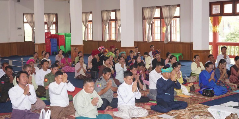 First, the congregation led by Chairman of Leading Body of Pa-O Self-Administered Zone U Khun Ye Htway, Commandant of Military Computer and Technological Institute Brigadier General Thein Naing observed five precepts administered by the presiding Sayadaw of Sasanalankara monastery and took the Paritta Suttas recited by the members of Sangha.