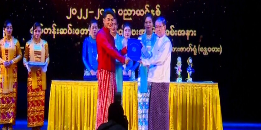 Next, the Union Minister handed the graduation certificate to the 16 students from the department of performing art, art of painting and the art of sculpture and the Mandalay Region Chief Minister gave the medal and prize of cash to the 5 outstanding graduate students and enjoyed the graduation concert performed by the students as the graduation ability show. Then, the Union Minister, Chief Minister, region ministers and well wishers presented cash of honor.