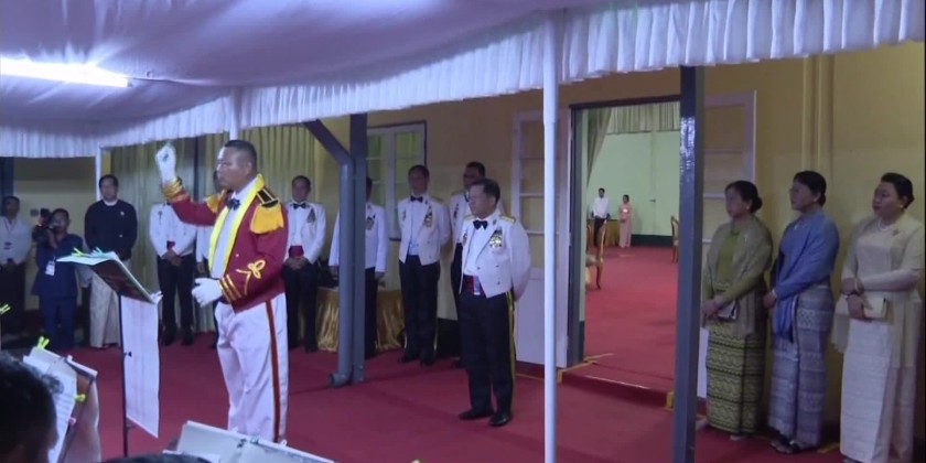 After the dinner, the Senior General and party enjoyed music of the Myawady Band under the Directorate of Public Relations and Psychological Warfare at Myawady Thabin Hall together with graduate officers.