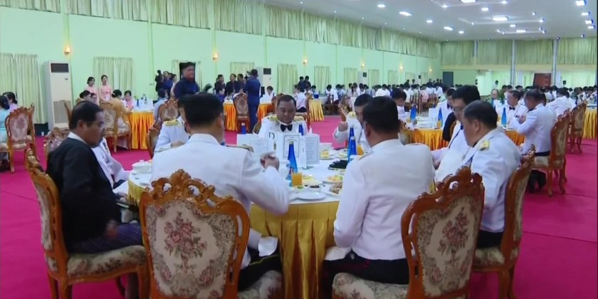 Also present at the dinner with the Senior General were wife Daw Kyu Kyu Hla, Commanderin-Chief (Navy) Admiral Htein Win and wife, Commander-in-Chief (Air) General Tun Aung and wife, senior military officers from the Office of the Commander-in-Chief of Defence Services and their wives, Union Ministers and wives, Chief Minister of Yangon Region, commander of Yangon Command, the commandant of the officer training school, senior officers from Hmawbi Station and invited guests.