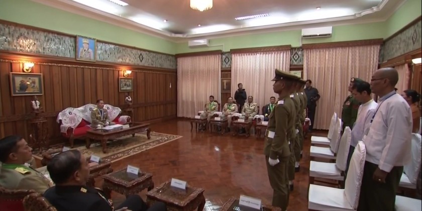 Following this, the Vice-Senior General accepted the salute of the cadet companies and departed from the parade ceremony. After the graduation parade ceremony, the Vice-Senior General, accompanied by senior military officers from the Office of the Commander-in-Chief and the Commander of East Command, met with the award-winning cadets at Yeiktha Hall and delivered words of honor.