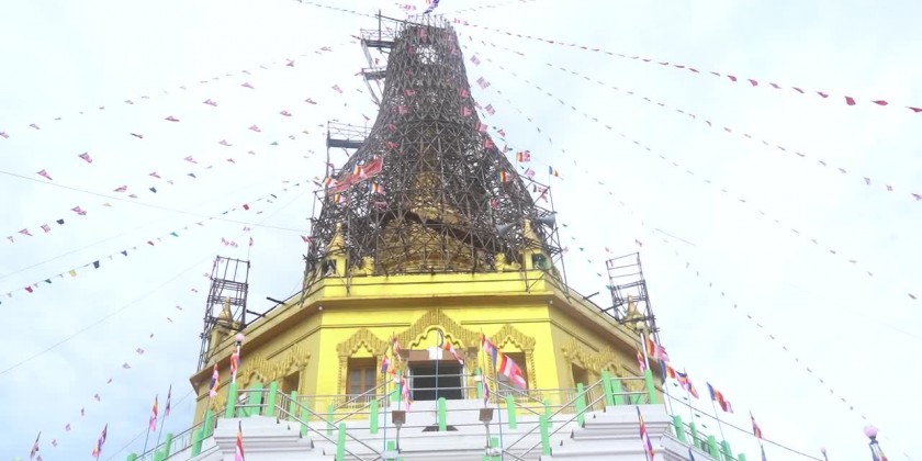 The grand ceremony of 5th gilding full circumference of ancient historic Shin-Pin-Sett-Kein-Te pagoda and hoisting diamond bud, pennant-shaped bane and golden umbrella atop the pagoda was held at the pagoda platform situated in Minbu Township of Magway Region in the morning on full moon day of Wagaung which falls on 19th August.