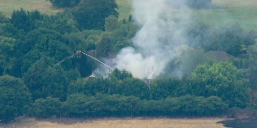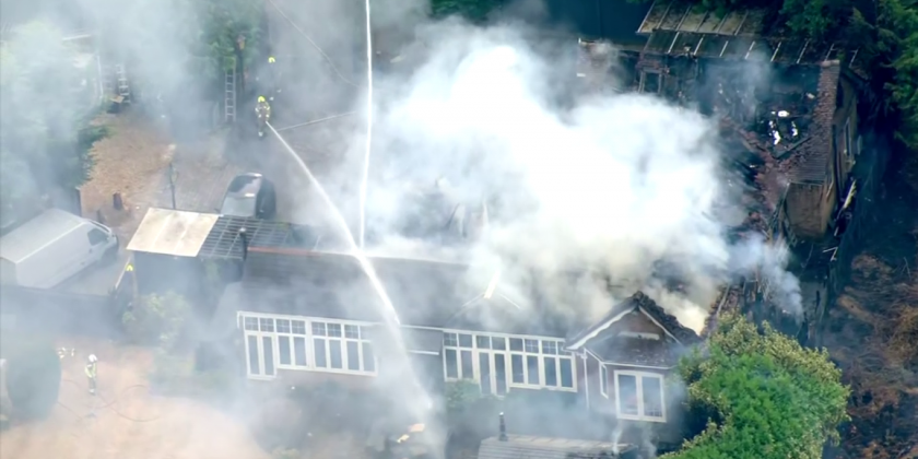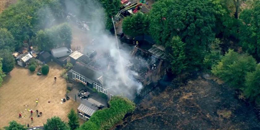 A grass fire badly damaged a house in the southern English county of Surrey on Monday, according to British broadcaster Sky News.