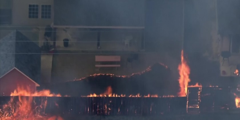 The mower was being used in the open field to trim the brush when its blade struck some debris and generated a spark that ignited the blaze, according to the local Fire Marshal. The fire spread quickly north from the shoulder of Interstate 20 to the subdivision about 4 p.m. Monday, causing varying degrees of damage to 14 to 20 homes before the flames were contained, an official said.There were no immediate reports of injuries.
