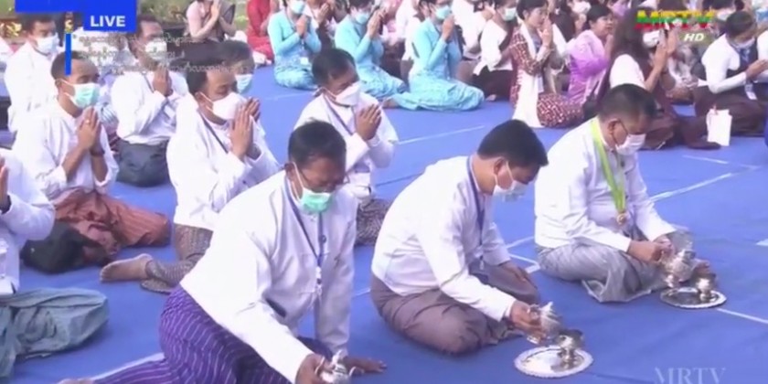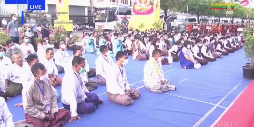 At the ceremony, first, the congregation led by the Mandalay Region Chief Minister Wunna Kyaw Htin U Maung Ko, region cabinet members, officials and well wishers observed 9 precepts administered by the presiding Sayadaw of Meikhtila monastery in Mahadhammikarama monastic complex, State Ovadacariya, Aggamahapadita Baddanta Sujanapiya. Next, the congregation took the Paritta Suttas recited by the members of Sangha.