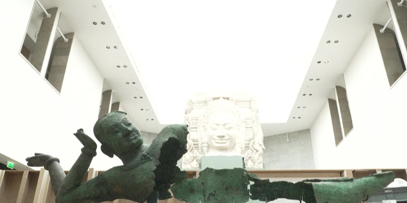 A monumental bronze statue of Vishnu, a masterpiece of Khmer art, is currently on display at the Musée Guimet in Paris as part of the exhibition Angkor Royal Bronzes: Art of the Divine.