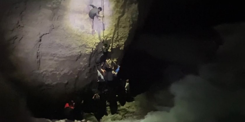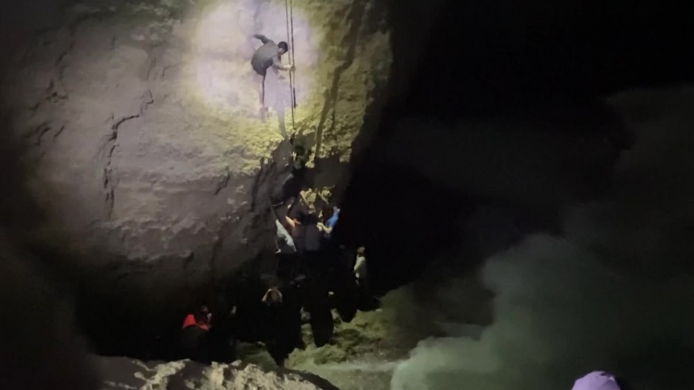 Winds in the area were up to 70 kph Fire service rescuers lowered ropes to help migrants climb up cliffs on the seafront.