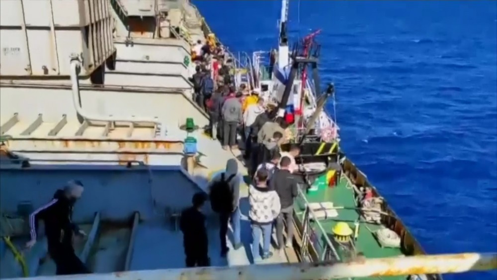 The Greek Coast Guard rescued 56 migrants on Saturday night, about 33 nautical miles west of Kefalonia Island and transported them to the northwestern port of Igoumenitsa on the mainland the following morning.