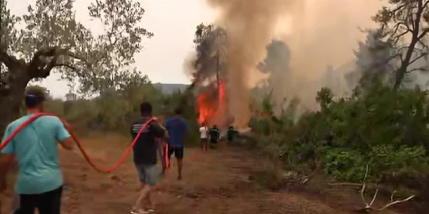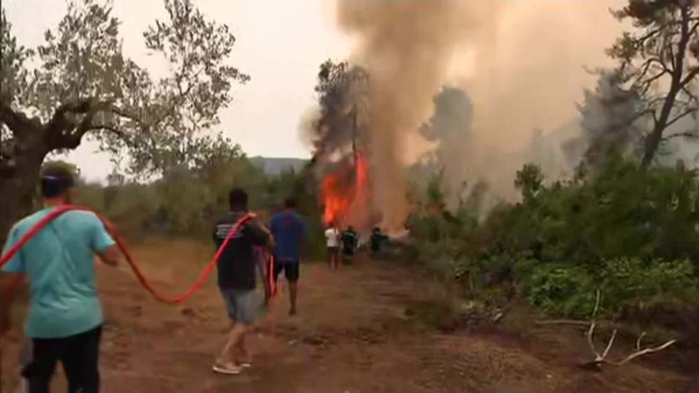 Greek Prime Minister said the destruction of Evia island, that has been engulfed in flames for a week, "blackens everyone's hearts" as he addressed the nation on Monday. A massive fire on the country's second-largest island has been burning for the seventh-straight day and has ravaged pristine forests, destroyed homes and businesses and sent thousands fleeing. The Greek premier apologised for "any weaknesses" shown in addressing the emergency and pledged compensation for all affected, and a huge reforestation and regeneration effort. The fire, which began Aug. 3, is the most severe of hundreds in the past week across Greece.
