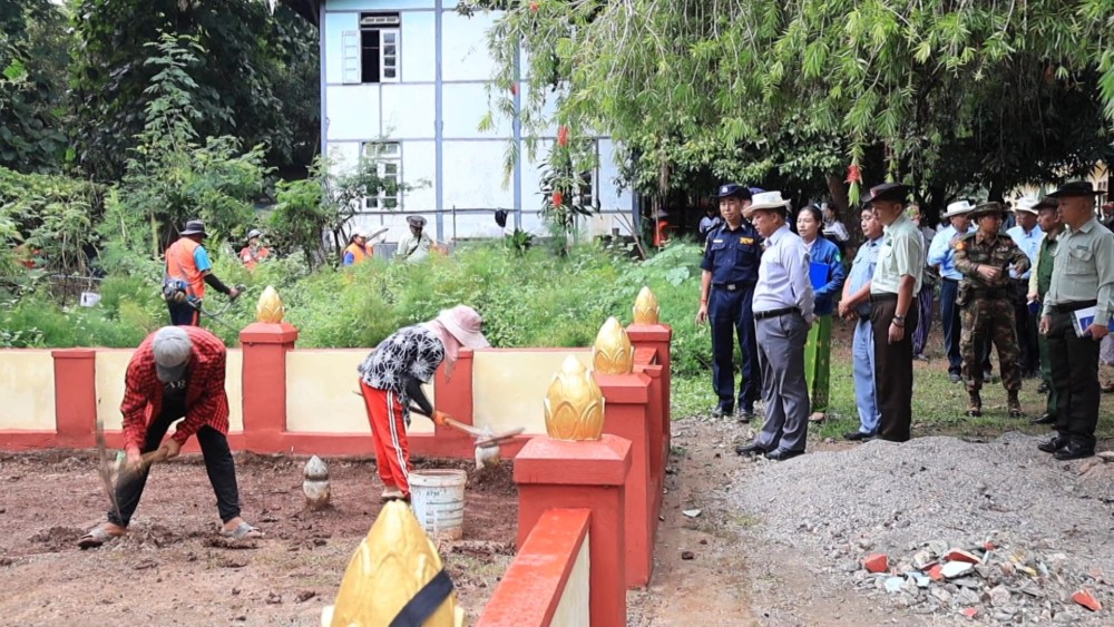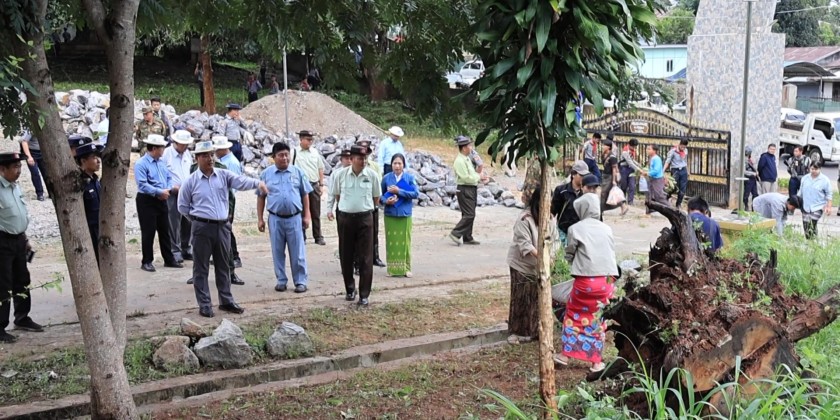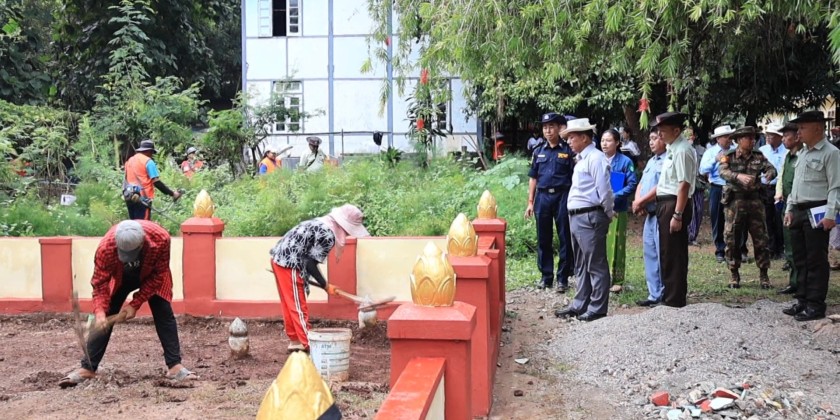 The Kayah State Government is stepping up efforts to implement a green and clean city initiative. On Saturday morning, Chief Minister U Zaw Myo Tin inspected collective cleaning activities at the Abbot Training School in Loikaw Township, together with state government members and departmental officials.