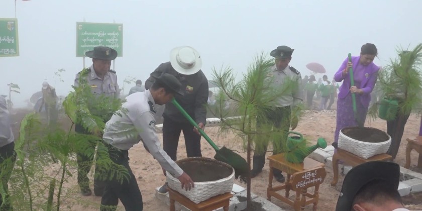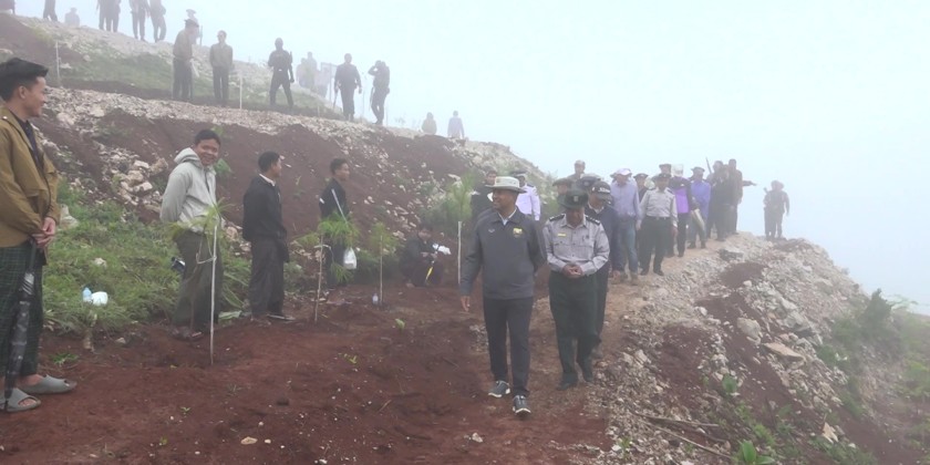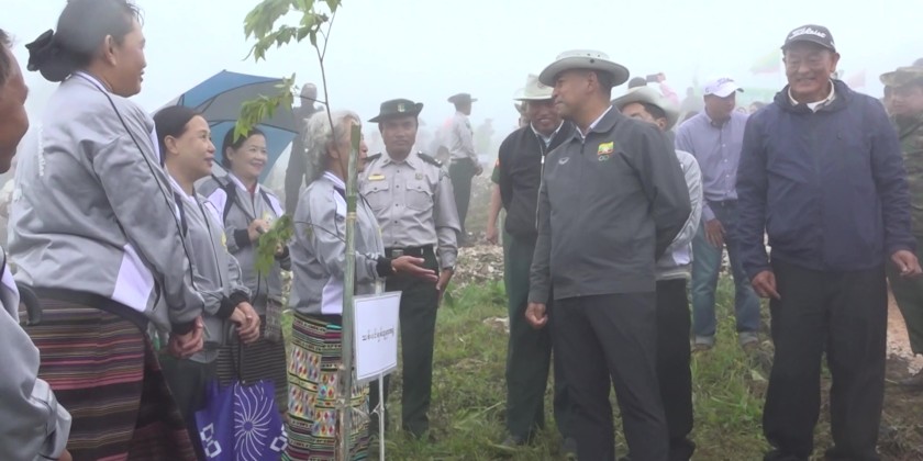 A total of 1,144 saplings including teak, cherry, and padauk, were planted using contour trenching and soil replacement methods. So far this year, more than 2.3 million trees have been planted across Shan State out of the planned 2.4 million. The Chief Minister and officials also inspected the reforestation area and heard reports on soil preparation, trenching, and maintenance operations.