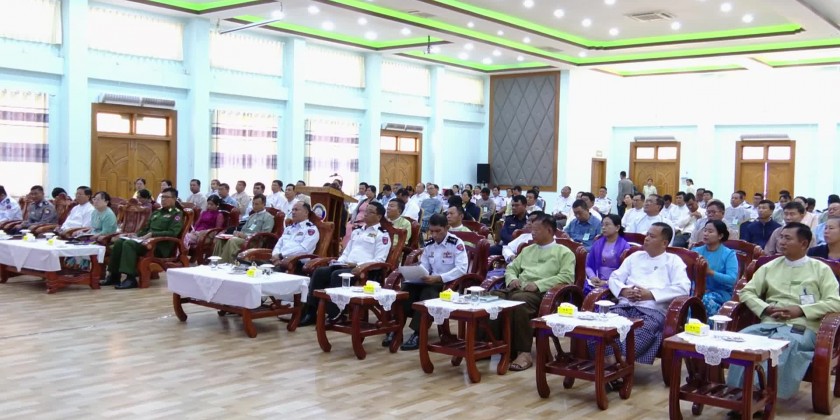 Chairman of the Central Committee on Supervising Ground Census Enumeration, Union Minister for Immigration and Population U Myint Kyaing along with the Sagaing Region Chief Minister met with regional governmental officials and Ground Census Enumeration committee members at the hall of regional office in Monywa Township on Tuesday.