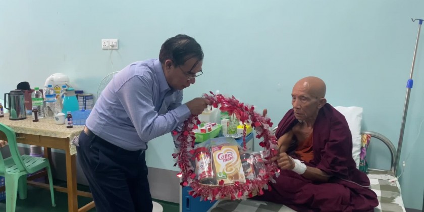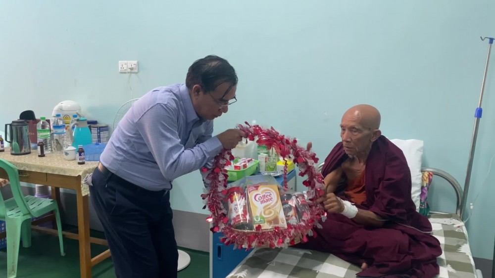 First, the Chief Minister paid homage to the Bodhi Tahtaung Sayadawgyi who is undergoing treatment at Pyay Township General Hospital and offered the offertories.