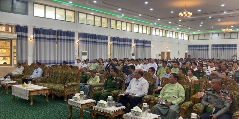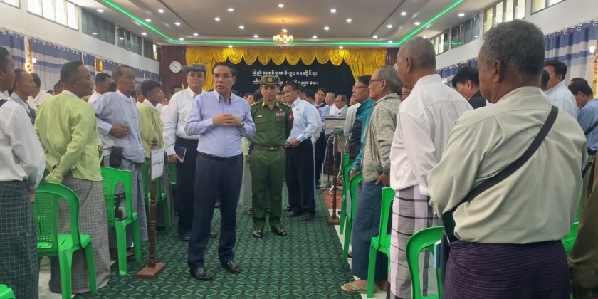 Bago Region Chief Minister U Myo Swe Win attended the educating talk on the Public Military Service Law held at the Township Hall of Pyay Township on 2nd March and took the ground inspection tour in Pantaung Township.