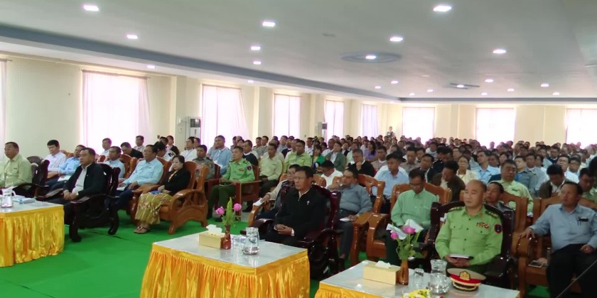 Next, the Chairman of District Administrative body clarified the implementation of project works for the improvement of Administration, economy, social and country’s economic promotion projects with Power point. Next, the Chief Minister and State Ministers handed the capital fund for the second project involving to the villages in Bamaw, Mansi and Moe Mauk Townships through the members of District, Township and Village supervising committees and one of the members expressed words of thanks and the Chief Minister gave a speech of conclusion.