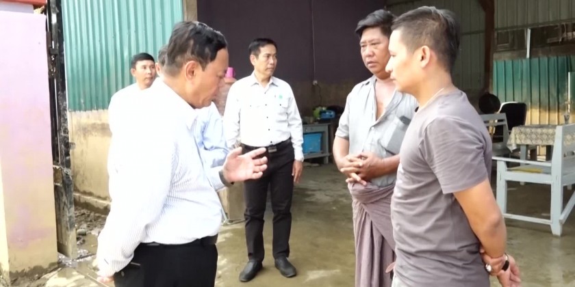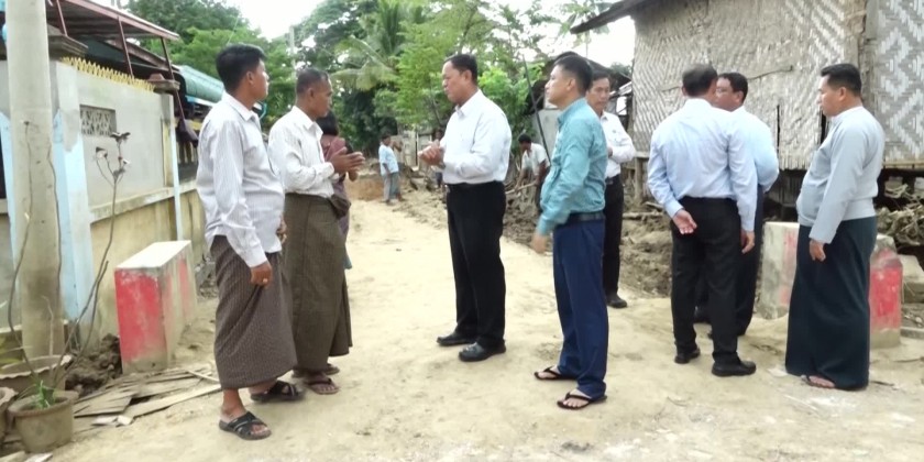 They have received the loans of 145 million Kyats in low interest disbursed on 5th October after forming cooperative societies. The officials concerned clarified the beans roasting and frying business resuming process. Upon the clarifications, the Union Minister gave words of encouragement and necessary instructions.Consequently, the Union Minister and party visited Kwet Thit Village of Hsin Thay Village-tract in Pyinmana Township, encouraged the affected peoples and pledged to repair the inter-Village Road, bridges, rural road and rural water supply as quickly as possible, gave necessary instruction to the responsible persons of the Village and provided rice to the residents.