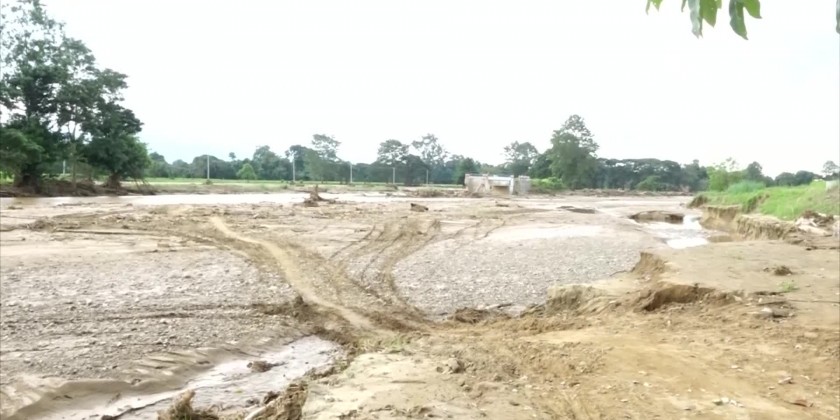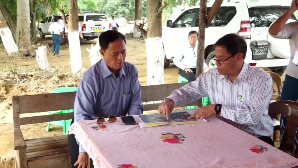 Next, the Union Minister inspected the collapsed approach roads of Nyaung Kaing steel-reinforced Concrete Bridge on Taung Po Tha-Tha Kya Hin Oh Inter-Village Road and instructed to submit the plans of renovation as fast as possible for uninterrupted accessibility of road transportation.