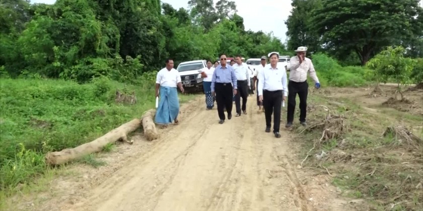 Chairman of the Career Rehabilitation Work Committee Union Minister for Cooperatives and Rural Development U Hla Moe accompanied by the officials made a ground inspection on the rehabilitation works in Tatkone Township of Union Territory Nay Pyi Taw on 8th October.