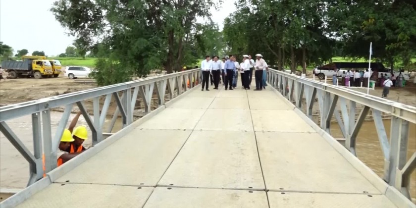 First, the Union Minister and party inspected completion of 120 feet long temporary Bailey Bridge for the uninterrupted accessibility of transportation in place of 60 feet Nenge creeking crossing bailey bridge on Ohn Pin-Taung Po Tha Inter-Village Road which was eroded and collapsed by the flash flood, heard the clarification of the resonsible officials and gave necessary instruction.