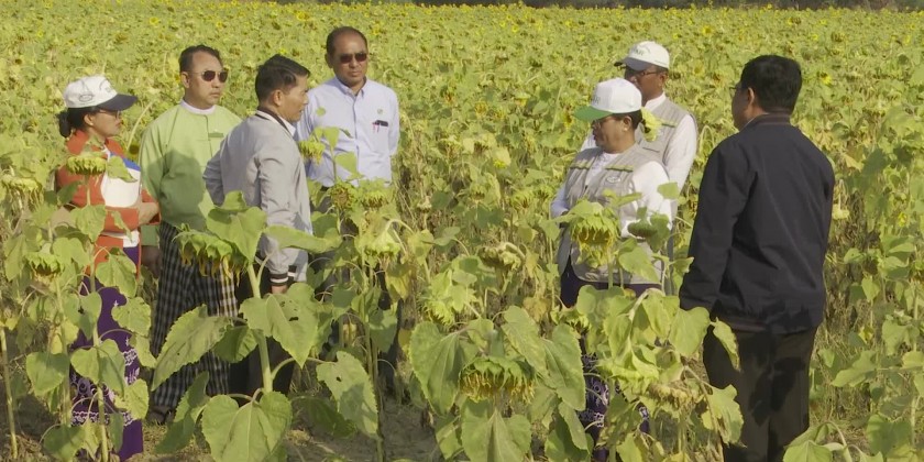 Union Minister for Agriculture, Livestock and Irrigation U Min Naung made a ground inspection to Sipin Garden of farm crops research division under Agriculture Research Department in Pyawbwe Township of Mandalay Region in the morning on 21st February, heard the clarification of responsible officials regarding research, production and implementation for the development of 11 crops including oil crop of HsinShwe Kyar-2, green gram, pigeon pea etc.