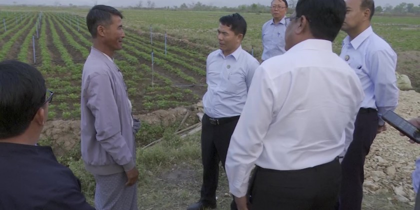 The officials from the department of Agriculture reported the implementation of technical assistance for the expansion of potato plantation and production in Shan State which is the largest potato producing area in Myanmar. In response, the Union Minister gave necessary instructions in detail. Then, Union Minister and Chief Minister inspected potato and garlic plantations with water sprinkling system and cordially met with the farmers and gave words of encouragement.