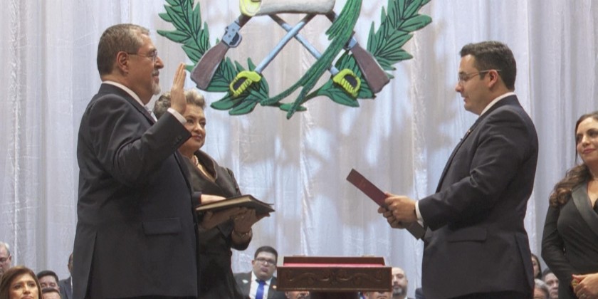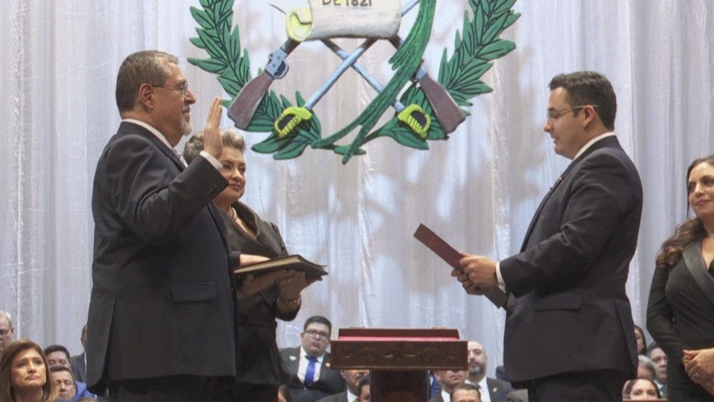 Guatemala's new President Bernardo Arevalo sworn in ceremony in Guatemala City. He took the oath of office after warding off a barrage of attempts to prevent him from taking power on Monday.