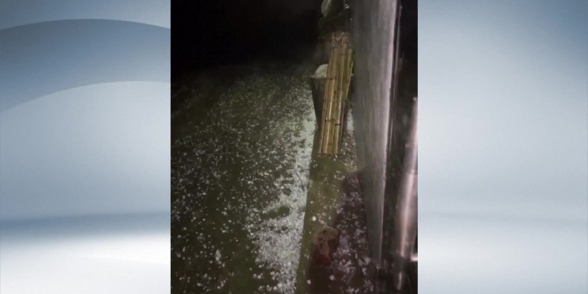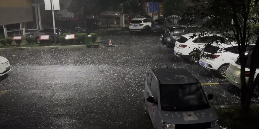Hailstorms battered in Guangxi Zhuang Autonomous Region, China on Tuesday night, damaging houses, vehicles and crops.Several places in the county were hit by hailstorms, along with brief thunderstorms, gale and heavy rainfalls. Local meteorological bureau carried out hail suppression work in some places to reduce the impacts of the hailstorms.