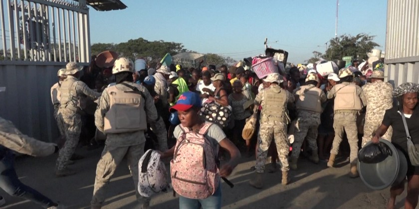 Haitians push through the gates separating their country from neighboring Dominican Republic to access the binational market in Dajabon. "There are fewer buyers, fewer Haitian sellers coming to this commercial exchange," say the Mayor of Dajabon, amid tensions in Haiti.