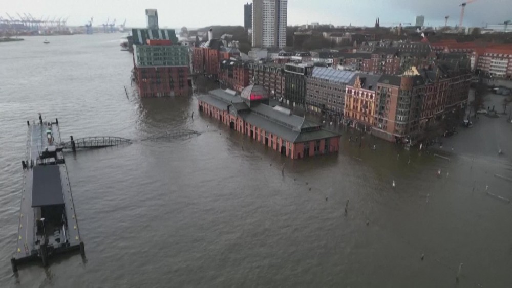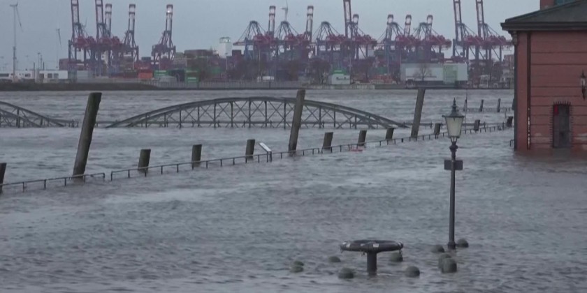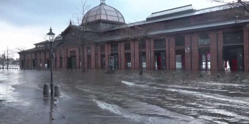 The fishmarket and surrounding streets in Hamburg's waterfront have been submerged following a storm surge caused by storm Zoltan. On the North Sea coast and along the Elbe and Weser rivers, the German Weather Service (DWD) has warned of a strong storm surge and gale-force gusts on the coast. Storm Zoltan has caused rail traffic disruptions across Germany only a few days ahead of the Christmas holidays.