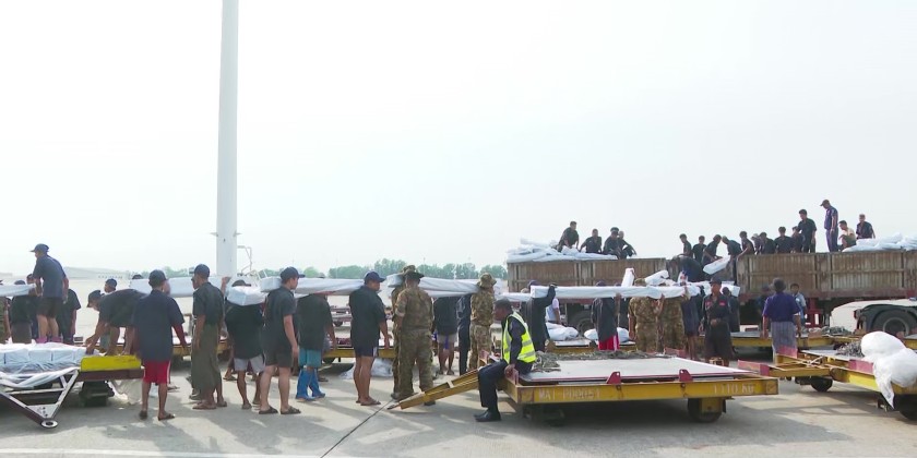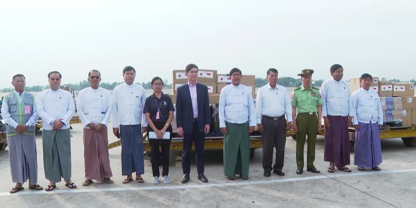 The donated rescue equipment was loaded onto vehicles by military personnel, staff from the Yangon City Development Committee, and local workers, and then transported to earthquake-affected areas under the supervision of the Yangon Region Government, with further delivery to Nay Pyi Taw.