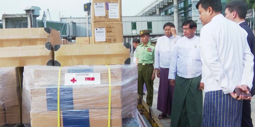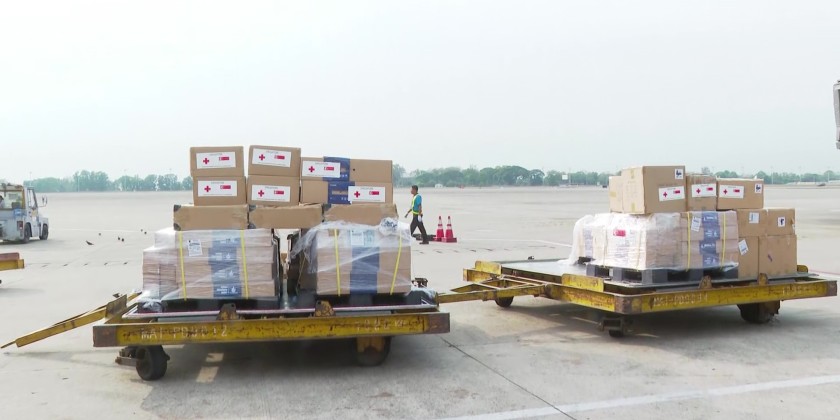 The Singapore Red Cross Society donated rescue equipment to Myanmar for the regions affected by the earthquake. The donation included solar-powered lamps and clean water machines in a total of 47 containers, and 1,518 kg of supplies. These items were handed over to Myanmar’s officials by Mr. Tan Ming Jun Benedict, the Deputy Chief of Mission and Counsellor at the Singapore Embassy in Myanmar, and other responsible personnel. The equipment was transferred to the Director U Than Soe and other relevant officials from the Disaster Management Department under the Ministry of Social Welfare, Relief and Resettlement. The handover ceremony was attended by Yangon Region Government Chief Minister U Soe Thein, Region Government Ministers, officials from the Ministry of Foreign Affairs, and Director-General U Zaw Phyo Win of the Strategy and Research Training Department, along with other responsible officials.