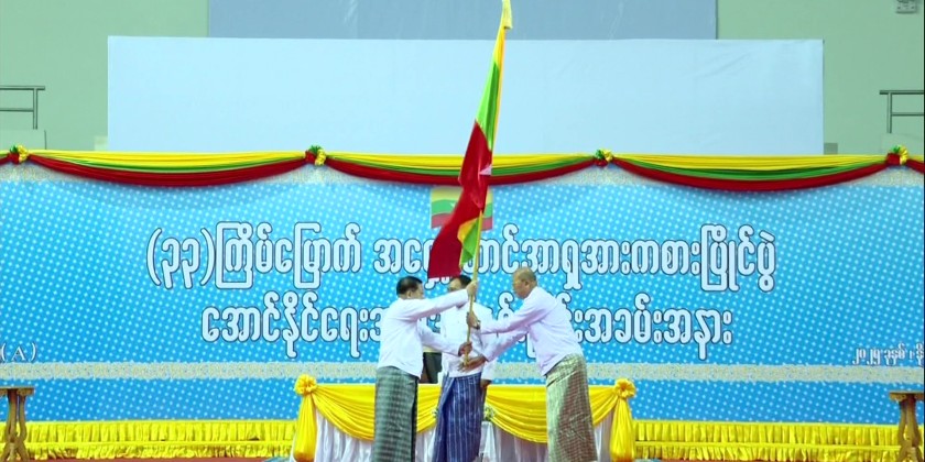 The victory flag-handover ceremony for the Myanmar sports contingent, which will compete in the 33rd Southeast Asian Games to be held in Thailand, was held at the Wunna Theikdi Sports Stadium (A) in Nay Pyi Taw on November 19.