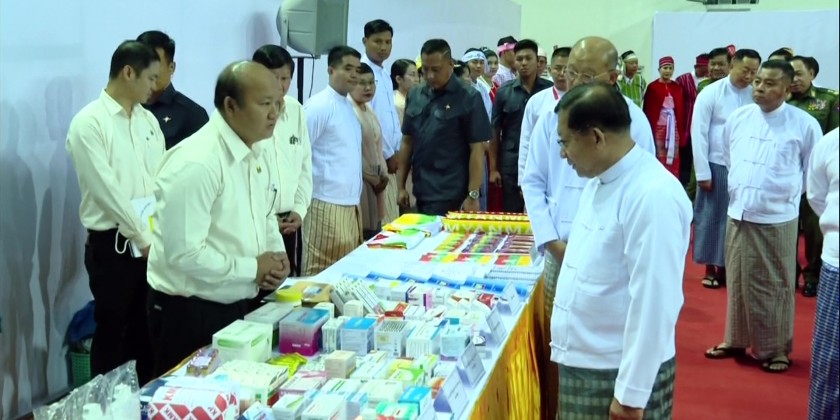 Subsequently, the Union Minister for Sports and Youth Affairs explained the preparatory measures taken by the Myanmar sports contingent for the 33rd SEA Games. Afterwards, the Acting President and SSPC Chairman met with and encouraged the sports teams that will compete in the 33rd SEA Games. He then inspected the equipment for each sport event, viewing exhibition booths one by one, and provided necessary guidance and instructions