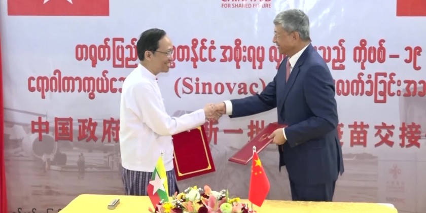 The two countries will strengthen cooperation in the field of epidemic control in the Sino-Myanmar border area, which will help revive border trade. Next, the Union Minister and the ambassador signed a memorandum of understanding on the transfer of vaccines and the Union Minister returned the certificate of appreciation. Afterwards, the Union Minister and the ambassador inspected the incoming vaccines at Yangon International Airport.