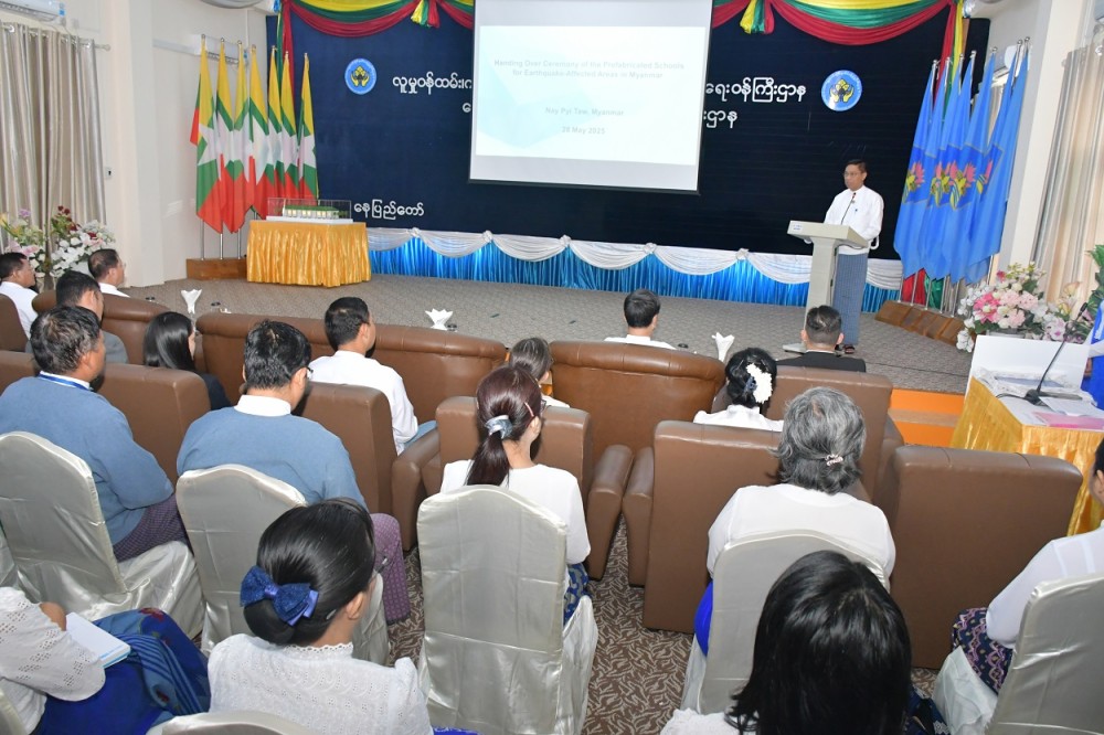 A handover ceremony for the prefabricated school buildings donated by donor countries through the AHA Centre for Mandalay earthquake-affected areas, was held at the meeting hall of the Department of Disaster Management under the Ministry of Social Welfare, Relief and Resettlement, on May 28.