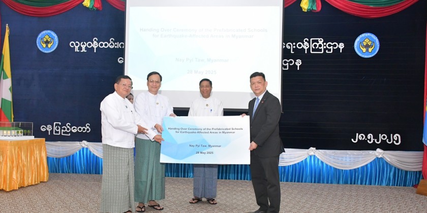 Due to the earthquake that occurred in March 2025, essential infrastructures including school buildings, roads, and bridges were damaged. Efforts are currently underway to reopen schools in the first week of June for the 2025–2026 academic year. In order to ensure children can learn in a safe and secure environment, 20 prefabricated school buildings donated by donor countries, coordinated by the AHA Centre, will be constructed, five each in Nay Pyi Taw, Sagaing Region, Mandalay Region, and Shan State.