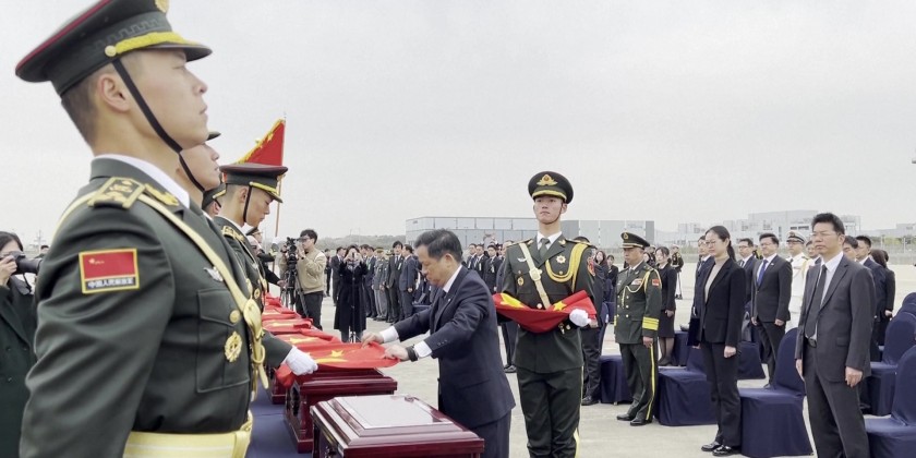 China and the Republic of Korea (ROK) held a handover ceremony on Wednesday morning at Incheon International Airport for the remains and 146 personal belongings of 12 Chinese People’s Volunteers (CPV) soldiers who lost their lives during the Korean War. This is the 13th such repatriation of CPV soldier remains following the handover agreement between the two countries.