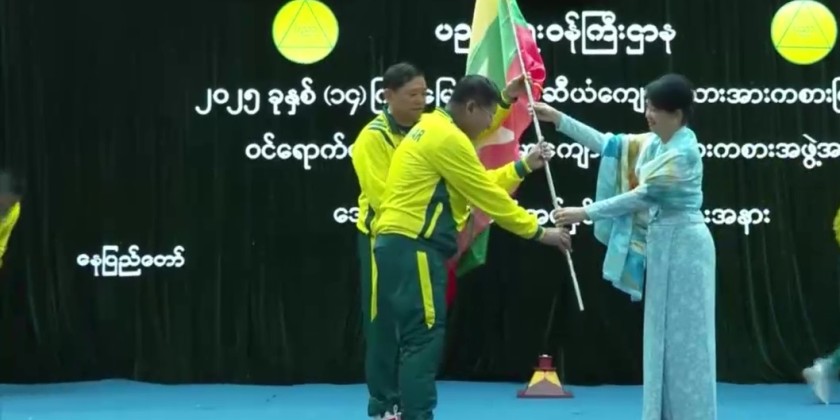 A ceremony to handover victory flag to the Myanmar student athletes who are going to participate in the 14th ASEAN Schools Games was held at the Ministry of Education in Nay Pyi Taw on 7th November. Union Minister Dr. Chaw Chaw Sein attended the event and made a speech, urging all to try their best in the competition, with the spirit of sportsmanship.