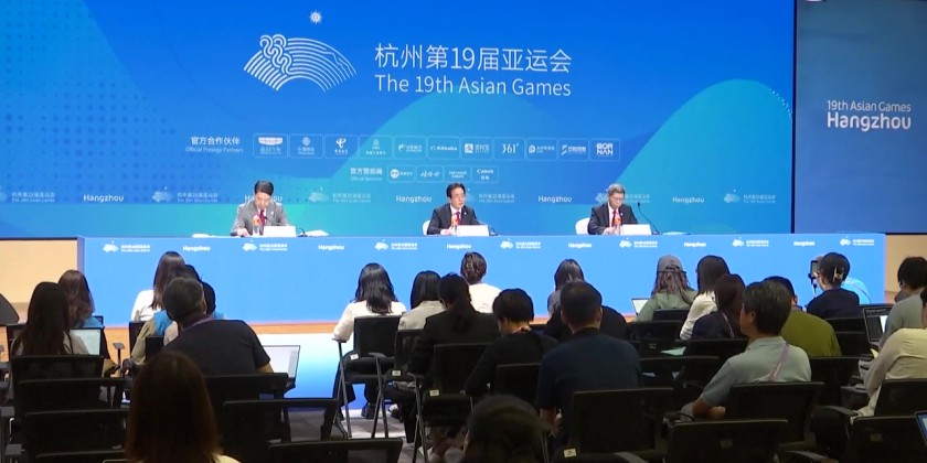 Hangzhou, the main host city of the 19th Asian Games in east China's Zhejiang Province, held a press conference to brief the media about the preparation work for the upcoming continental sporting event.