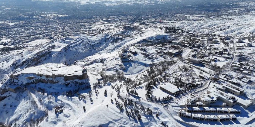 Historic Harput Castle in Türkiye’s eastern province of Elazığ had been covered in white following snowfall. Located in the Harput neighborhood, which is included on UNESCO’s Tentative World Heritage List, the 1,200-meter-high castle and surrounding historic structures, home to many civilizations over centuries, were left under a thick layer of snow.