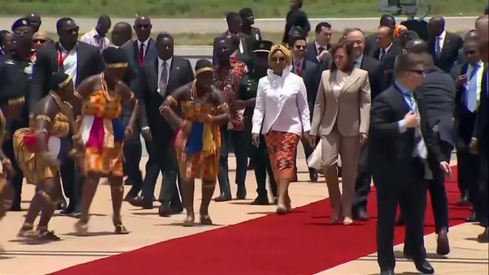 US Vice President Kamala Harris arrived in Ghana on Sunday to begin a week long trip to Africa.Children cheered and waved Ghanaian and American flags as she stepped off her plane after an overnight flight.