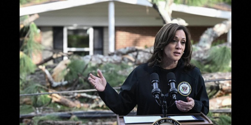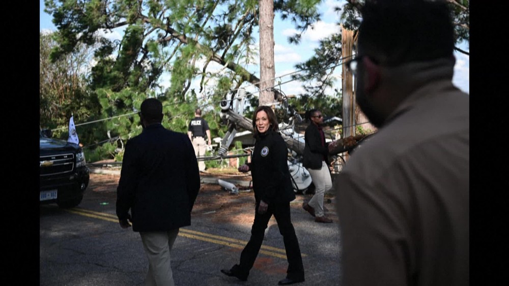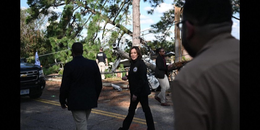 US Vice President Kamala Harris flew to the southern state of Georgia, which has been badly hit by Hurricane Helene.