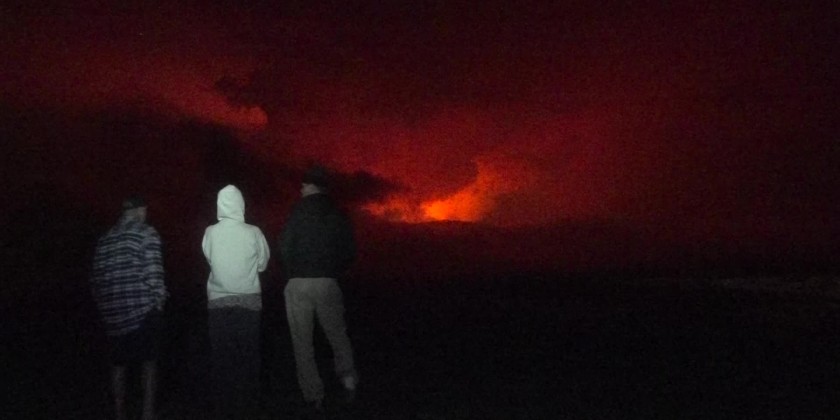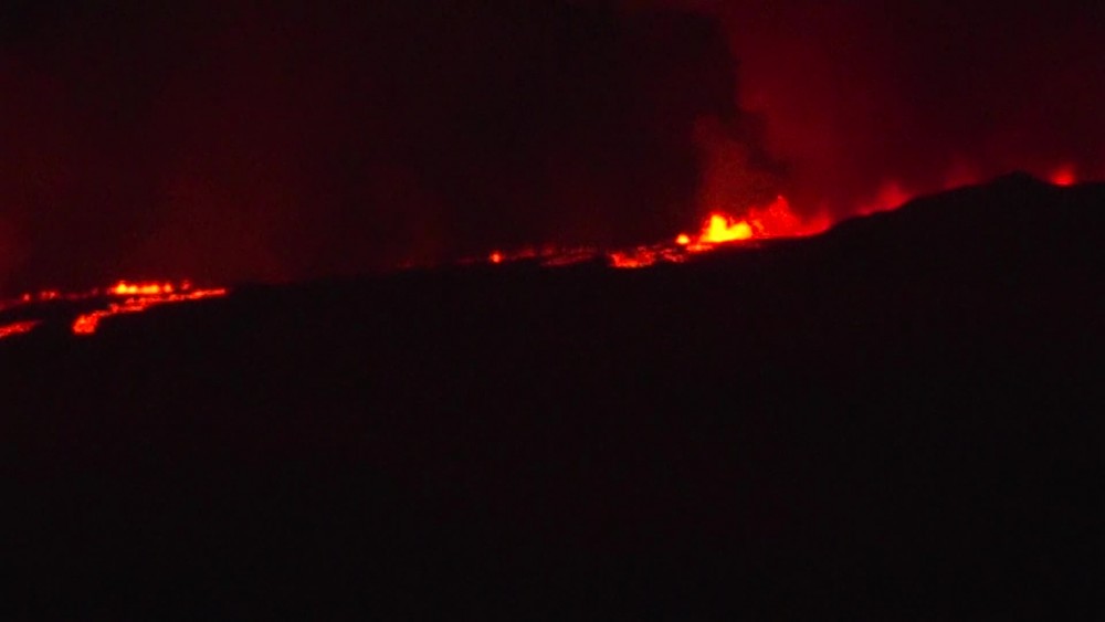 Spectators gathered in Hilo, Hawaii on Monday night, to watch as the Mauna Loa volcano erupts for the first time in nearly 40 years. Lava is shooting into the air and flowing downhill on Hawaii's Big Island.