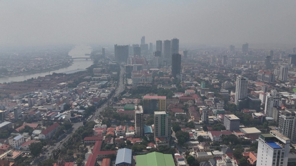 Haze shrouds Phnom Penh as air quality reaches "very unhealthy" levels in Cambodia's capital, according to air monitoring company IQAir.