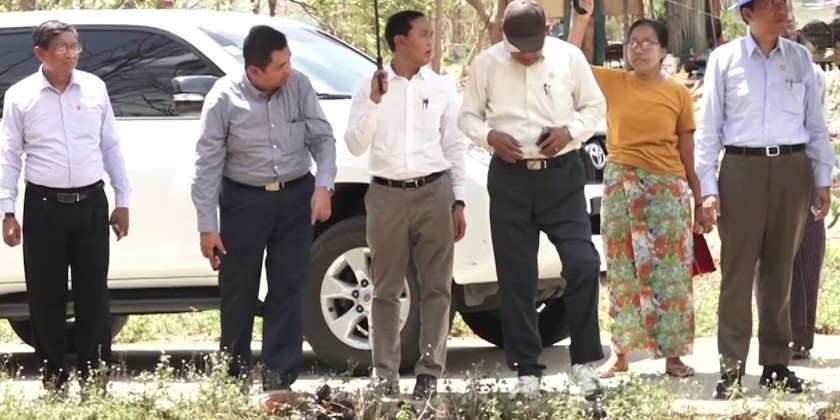 Union Minister for Health Professor Dr Thet Khaing Win inspected the chosen sites for building temporary shelters for the staff under the ministry on Saturday.