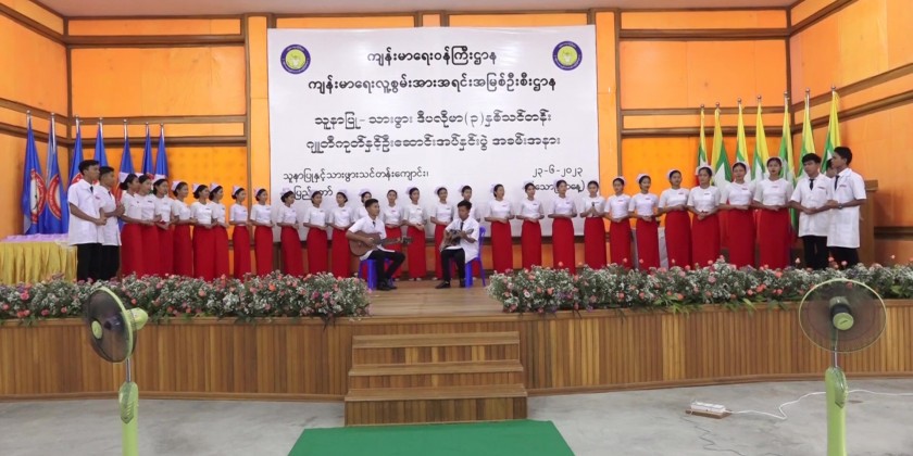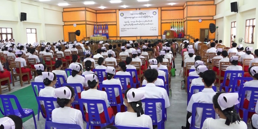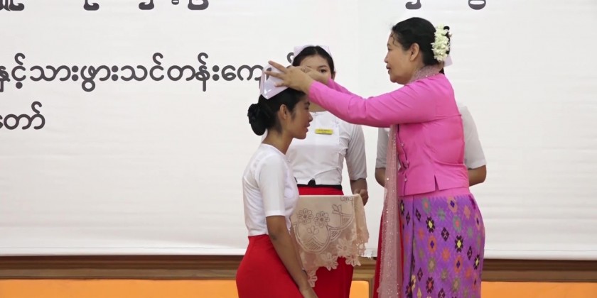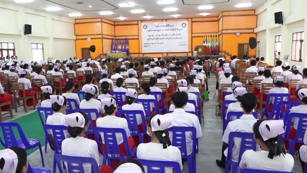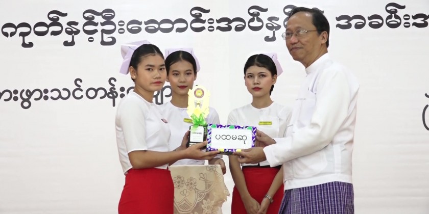 The Department of Human Resources for Health, under the Ministry of Health, organized a Duty Coats and Nursing Caps presentation ceremony for the trainees who had completed a 3-year Nursing-Midwifery Diploma Course at the Nursing and Midwifery Training Schools in Nay Pyi Taw.