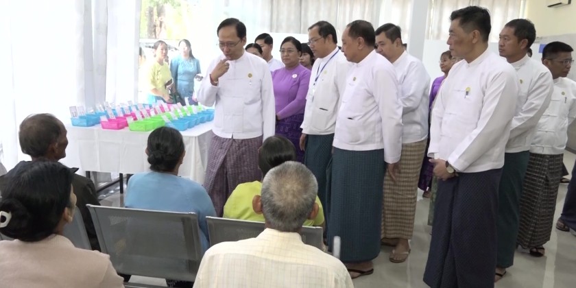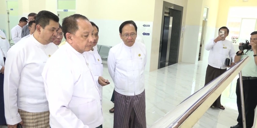 The Union Minister and party also viewed the Out-Patient Ward, Laboratory, Operation Theatre, Medical Ward and Specialty Ward. They then proceeded to New Yangon General Hospital, and inspected the newly constructed 4-storey annex building.
