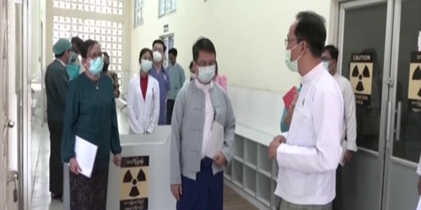 Union Minister for Health Dr Thet Khaing Win and officials observed the Myancopharm COVID-19 vaccination at Zabuthiri Hospital (50-bed) in Nay Pyi Taw on Wednesday.