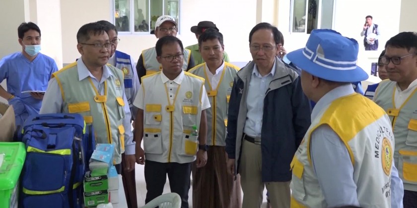 On Thursday, Union Minister DrThetKhaing Win visited the relief camps and encouraged the health staff, rendering health care services to the flood victims. He also provided the needs for medicines and medical equipment while instructing for personal hygiene and systematic throwing of wastes with health awareness.